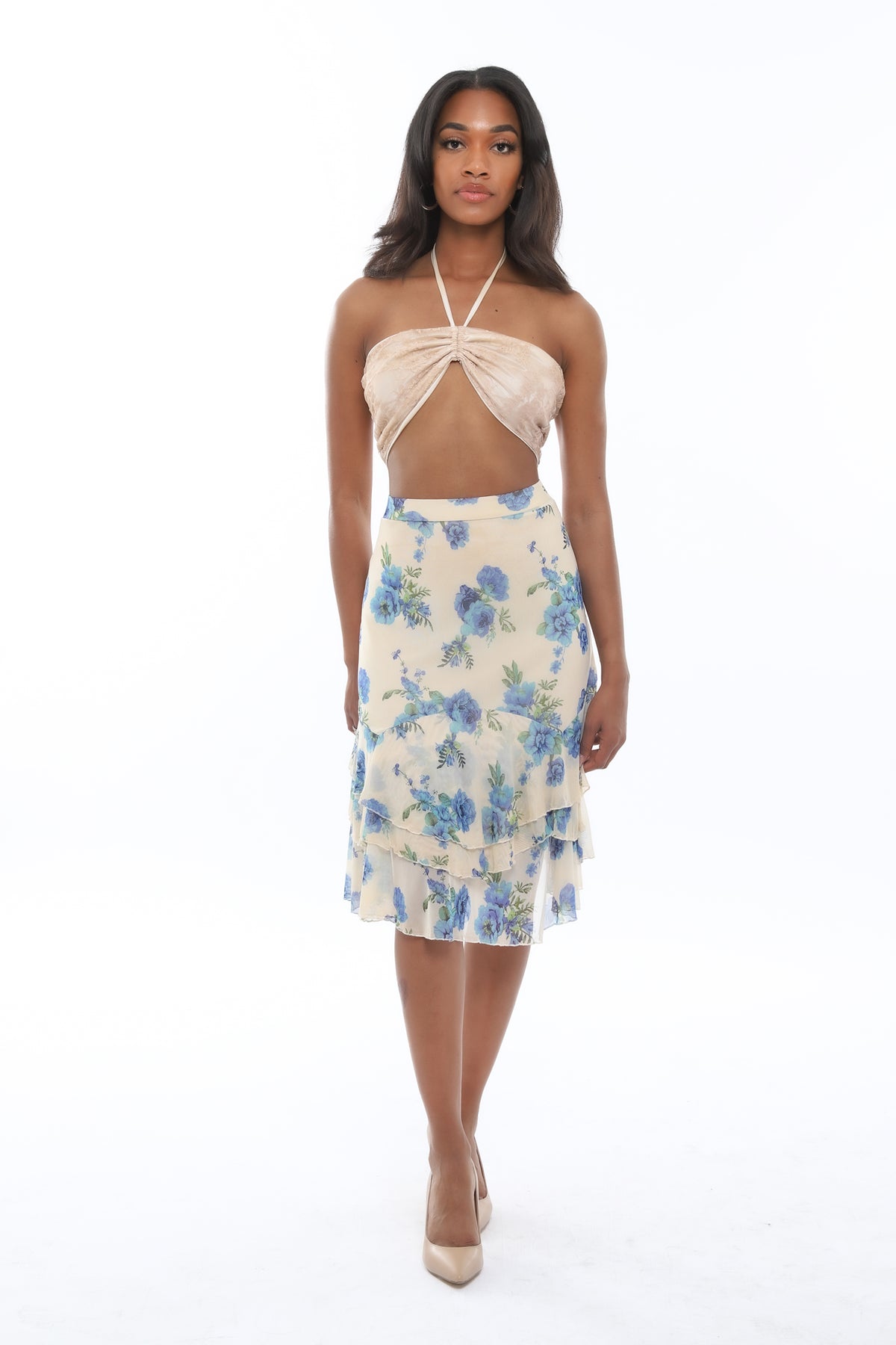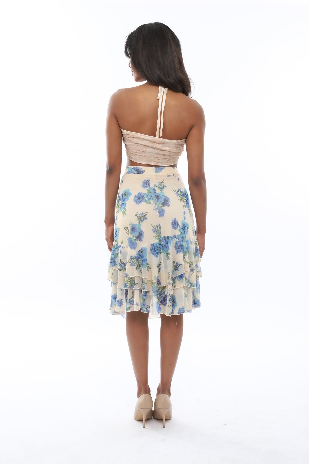 The Sophie skirt has a double flounce hem and midi lengths with satin underskirt. It's a flattering silhouette.