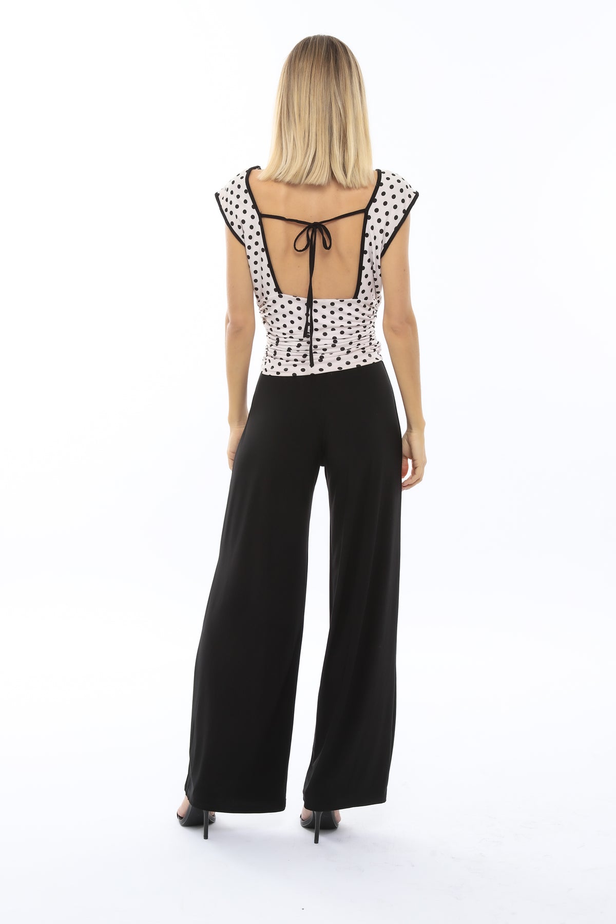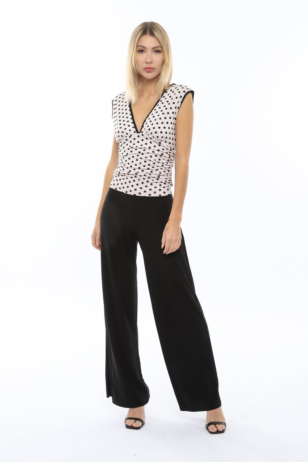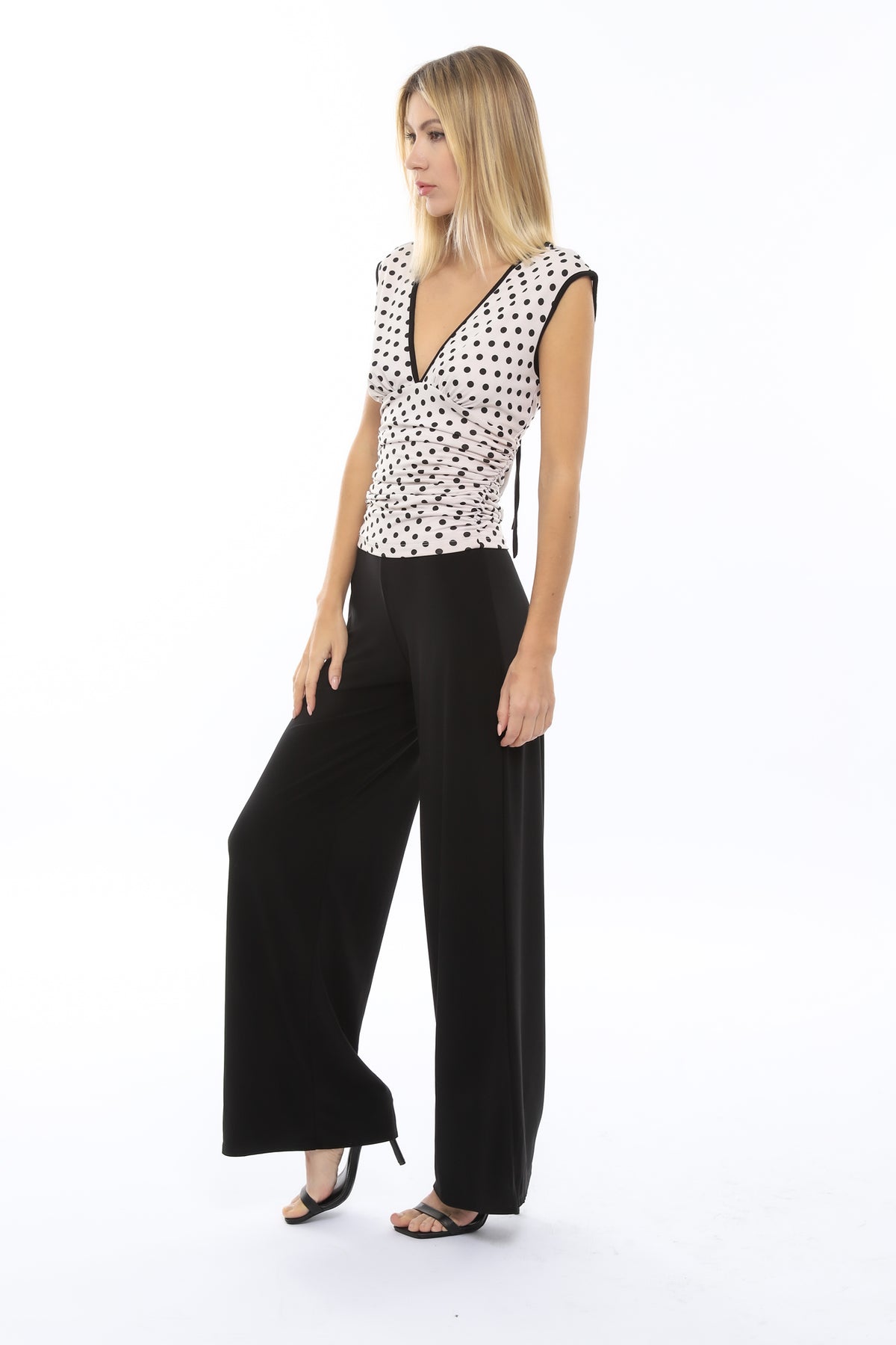 Isabel gathers at the sides and has a plunging v-shape neckline. A square back with spaghetti ties finishes off this top. Paired with our Nadine trousers in this photo.
