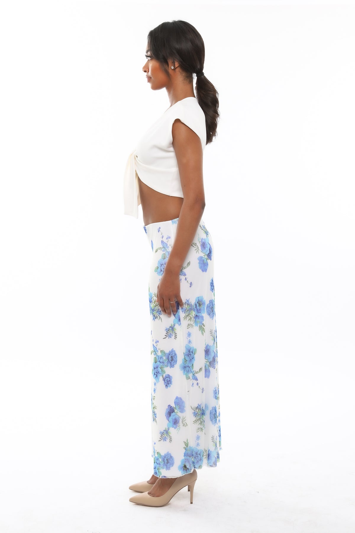 The Sarah is a slim fitting crop top that has a V-neck front. It ties at bust. Snug fit and cap sleeves.